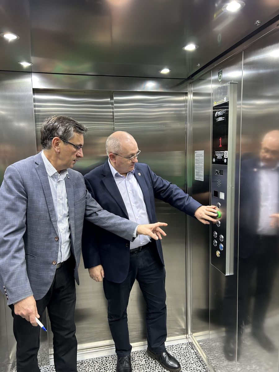 Burmistrz Miastko Jerzy Wójtowicz wraz z Głównym specjalistą ds. nadzoru właścicielskiego Kazimierz Kozieł przeprowadzili – w ramach nadzoru właścicielskiego – inspekcję zadania realizowanego przez Szpital Miejski w Miastku Sp. z o.o. pn. „Zakup i montaż windy do oddziału rehabilitacji”.