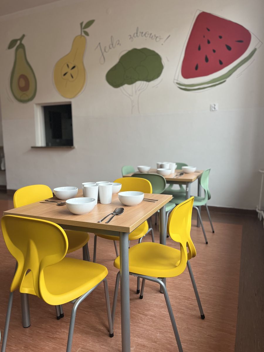 W ramach przyznanej dotacji zakupiono m.in.: zmywarkę do naczyń kapturową, obieraczkę do ziemniaków, stół do wydawania posiłków ze stali nierdzewnej, szafę chłodniczą, a także nową zastawę stołową, komplet sztućców i termosy stołowe. Ponadto wnętrze stołówki zostało wyremontowane i zyskało nowe stoły i krzesła.