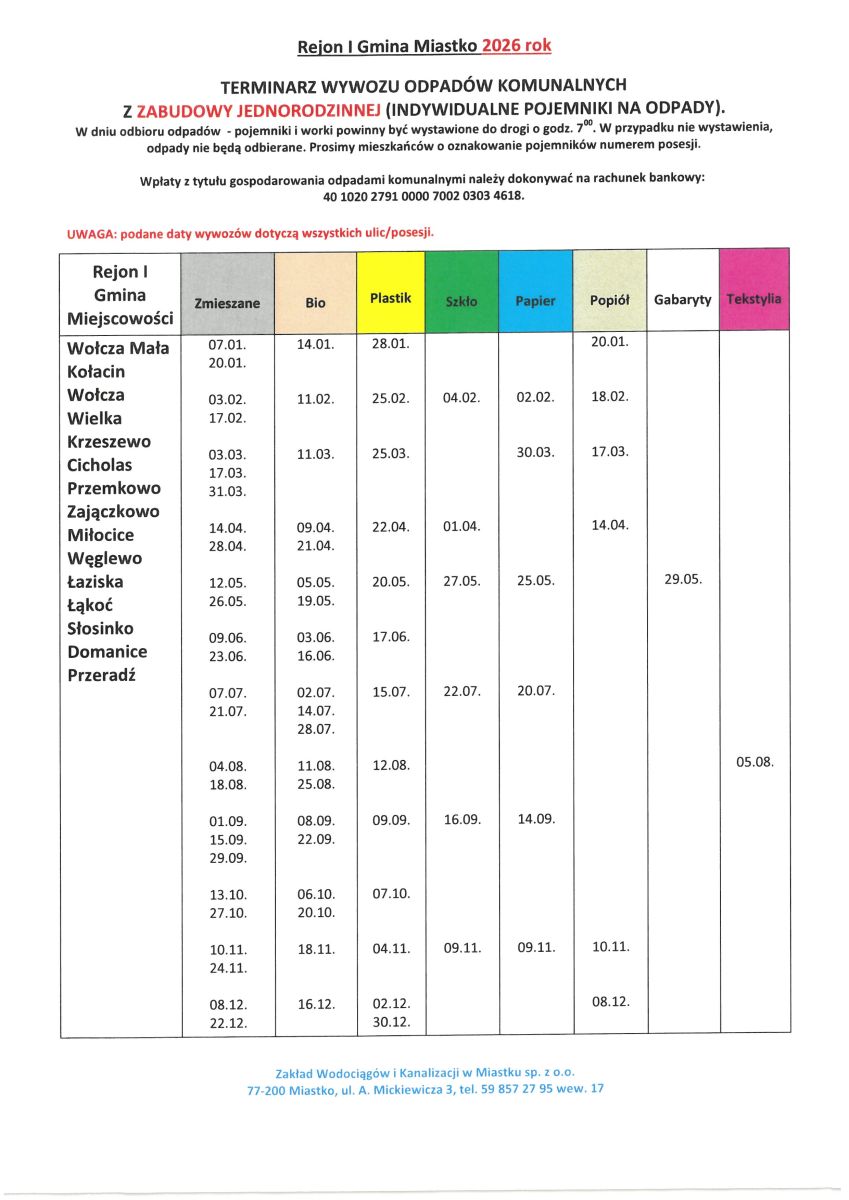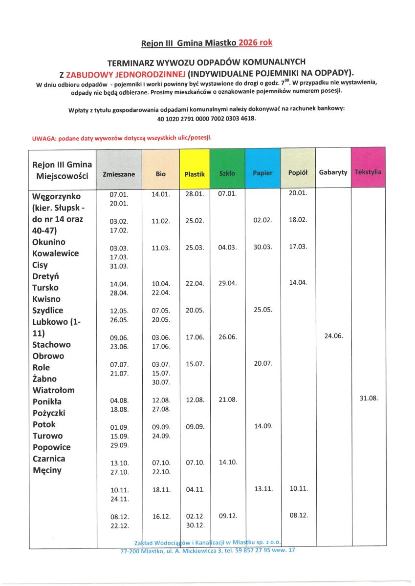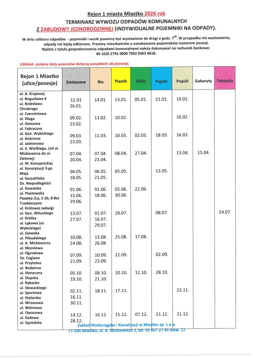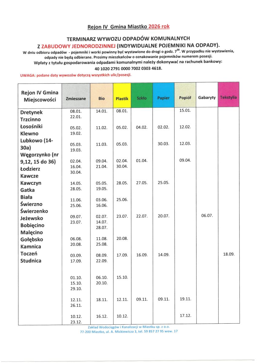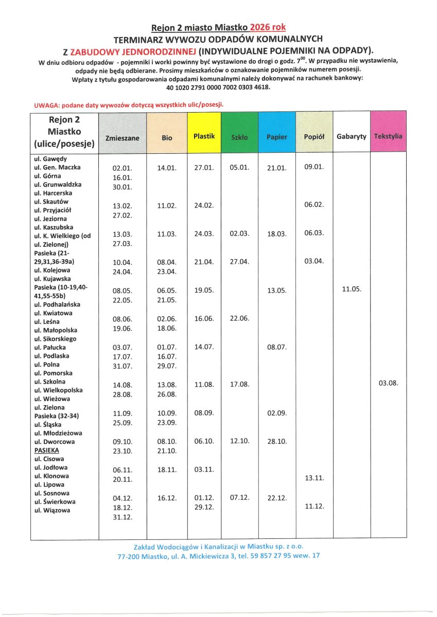 Harmonogram wywozu śmieci